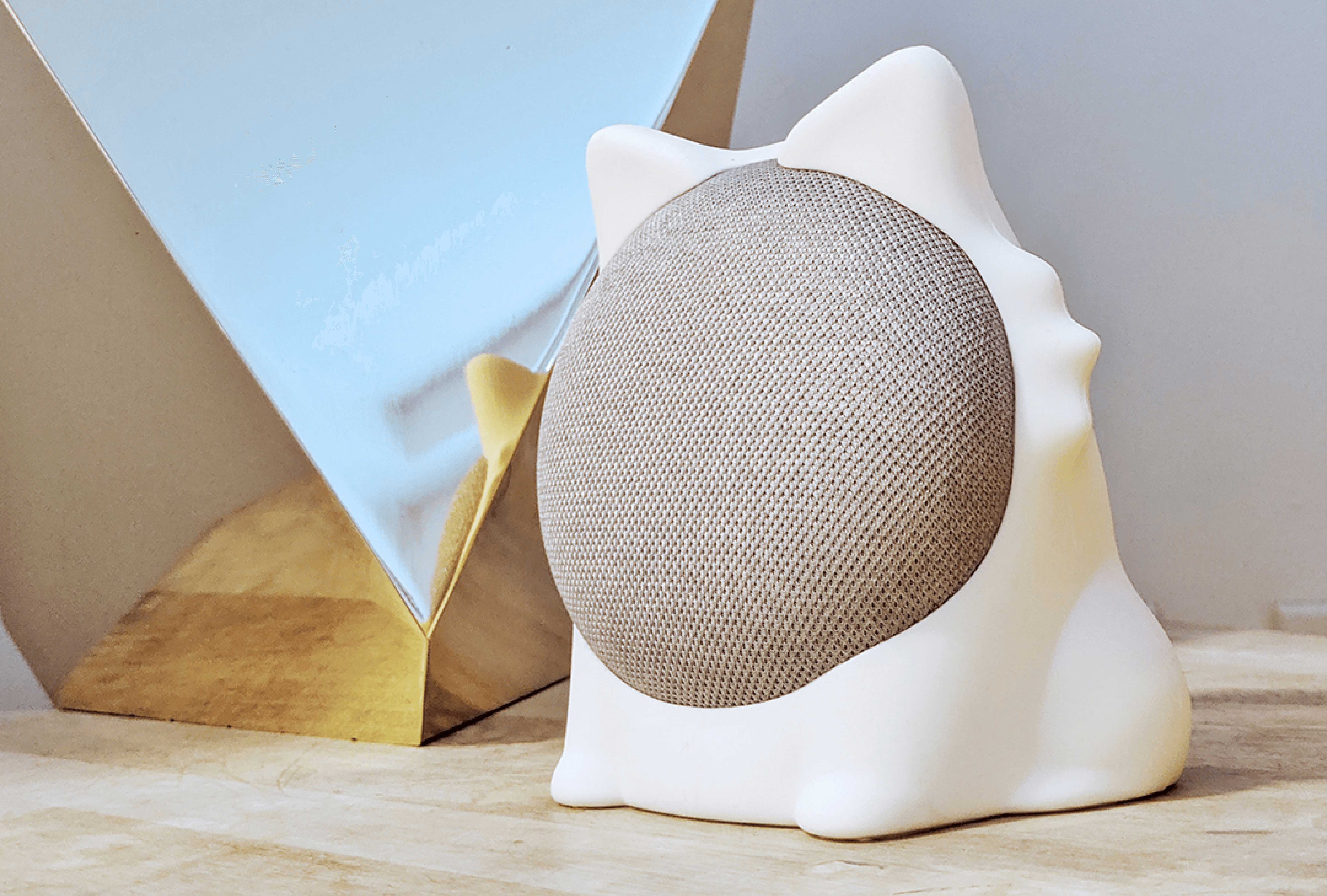 CAAT was designed to give Google Home a distinct character and make the device feel warmer and more approachable within the home. The soft silicone form softens the technology’s presence, transforming it from a cold, utilitarian object into something more friendly and domestic.