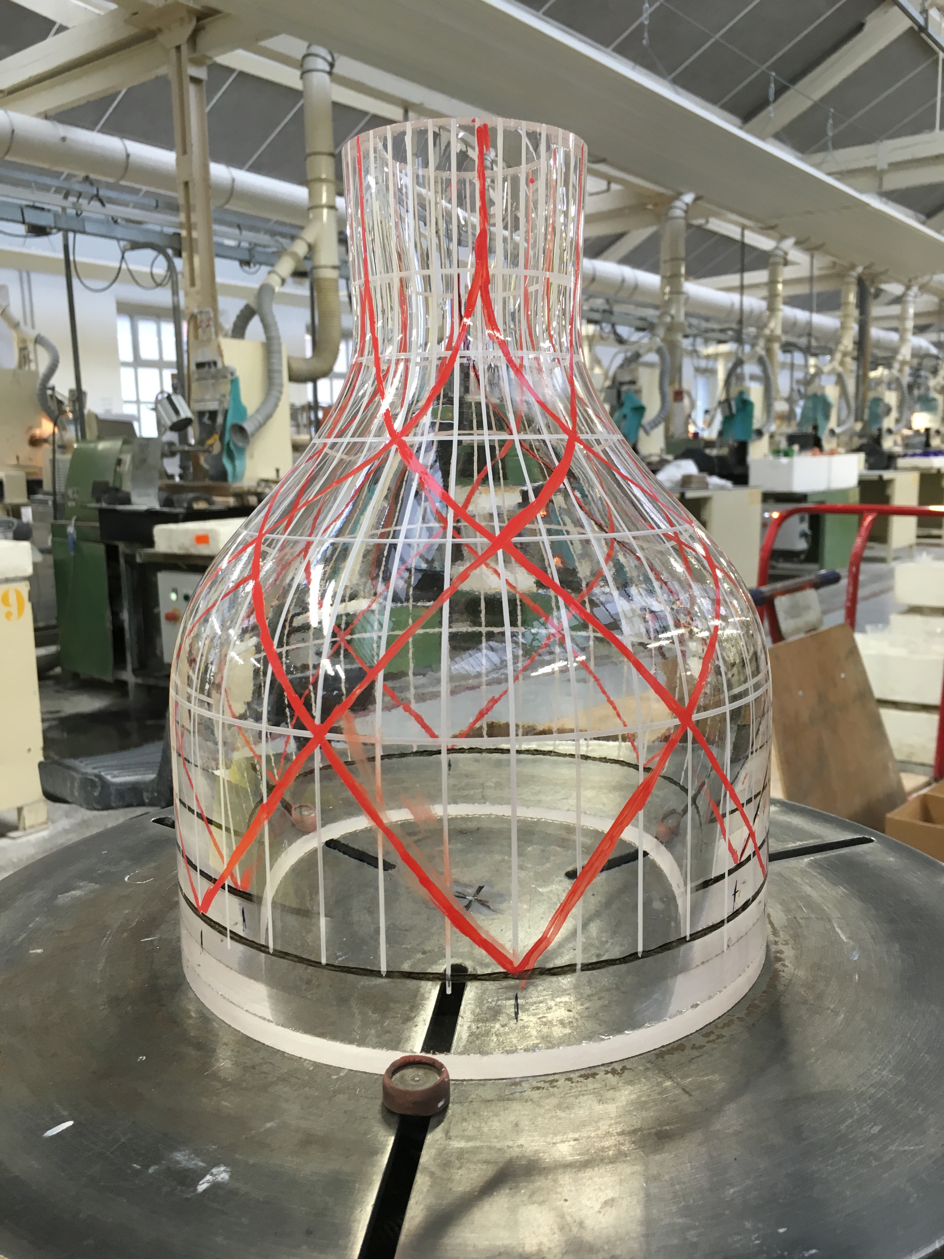 I had the opportunity to visit the historic Saint-Louis crystal manufactory twice during the project, observing the handcrafting process firsthand and working closely with the artisans to align the final piece with our design vision.